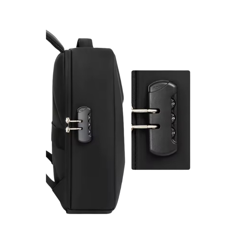 Modni muški ruksak SHBO-R F-202 (crni) je moderan gradski ruksak sa tvrdim prednjim panelom, skrivenim zatvaračima i eksternim USB priključkom – idealan za posao, fakultet i putovanja po gradu.