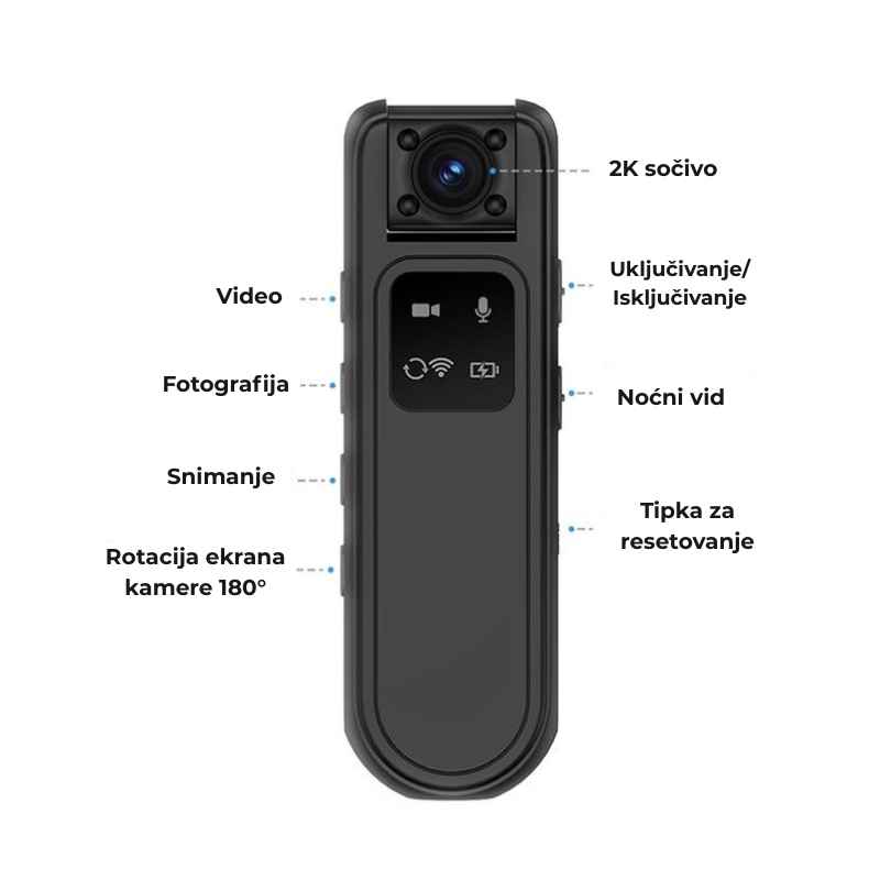 A22 2K mini kamera sa Wi-Fi-jem donosi savršen spoj mobilnosti, kvaliteta i praktičnosti. Bilo da vam treba za sigurnost, vožnju, sport ili vlogovanje – pouzdano Ce zabilježiti svaki trenutak i pružiti jasnoCu na profesionalnom nivou.