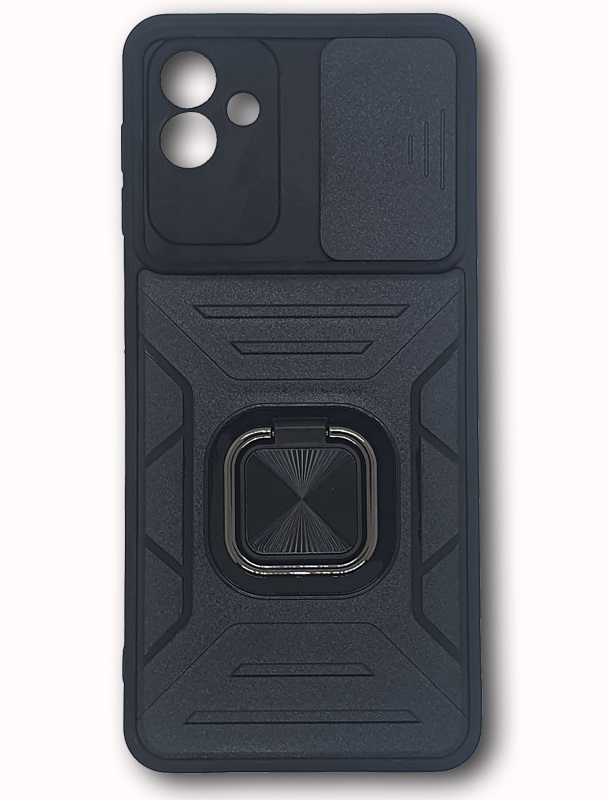 ARMOR SLIDE A04 CRNA SAMSUNG maska napravljena je od kvalitetnog materijala, modernog dizajna, a jednostavna je za umetanje i vađenje. Savršeno pristaje uz svaki telefon te ga štiti od prašine, ogrebotina i udara.Ugrađen ring holder. Ugrađena metalna pločica za magnetne držače.