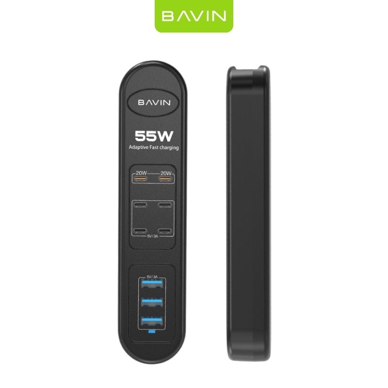 BAVIN PC2109Y 9U1 čvor za punjenje 55W je praktična i snažna stanica za punjenje koja omogućava istovremeno napajanje više uređaja na jednom mjestu. Zahvaljujući kombinaciji više USB i Type-C priključaka, ovaj model je idealan za kuću, ured ili radni sto gdje je potrebno puniti telefon, tablet, slušalice i druge uređaje.