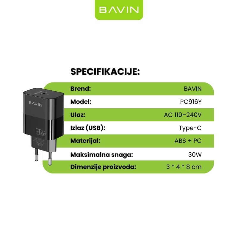 BAVIN PC916Y je odličan izbor ako želite jednostavan, siguran i “cool & safe” punjač koji brzo puni preko Type-C porta, a pritom čuva bateriju.