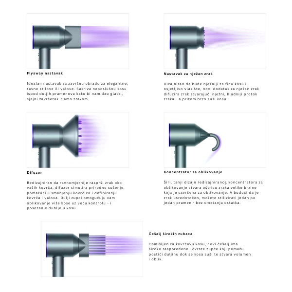 LEAFLESS HAIR DRIER AN-W1 dolazi sa pet različitih nastavaka koji omogućavaju prilagodljivost i fleksibilnost. Ovi nastavci čine LEAFLESS HAIR DRIER AN-W1 savršenim izborom za svaku frizuru.