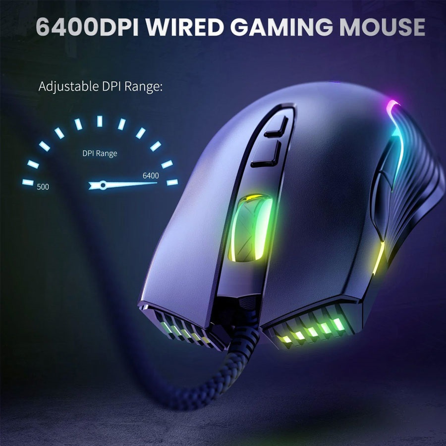 Sa podesivim DPI do 6400 i 7 programabilnih tastera, ovaj miš omogućava preciznu kontrolu i brzo prebacivanje između funkcija tokom igranja. Njegov ergonomski dizajn osigurava udobnost, a RGB osvjetljenje stvara impresivan vizualni efekat.