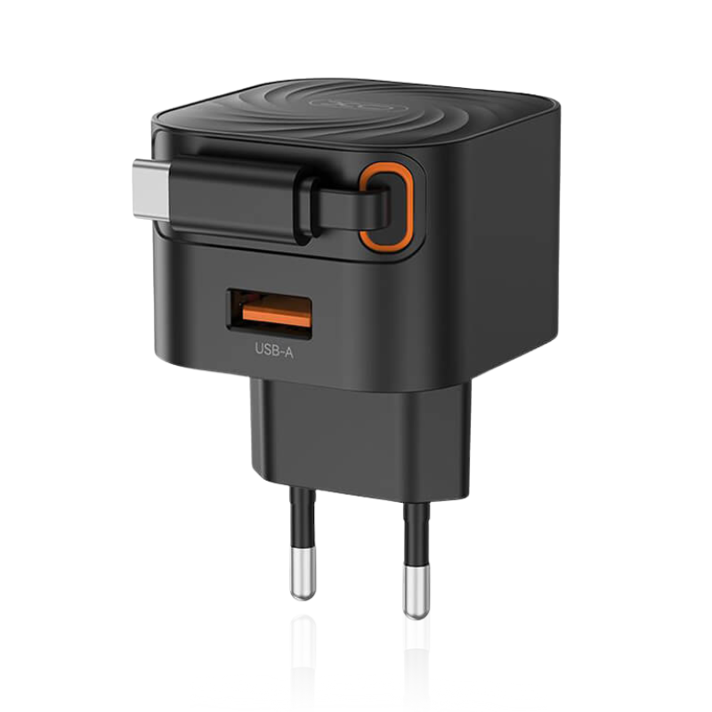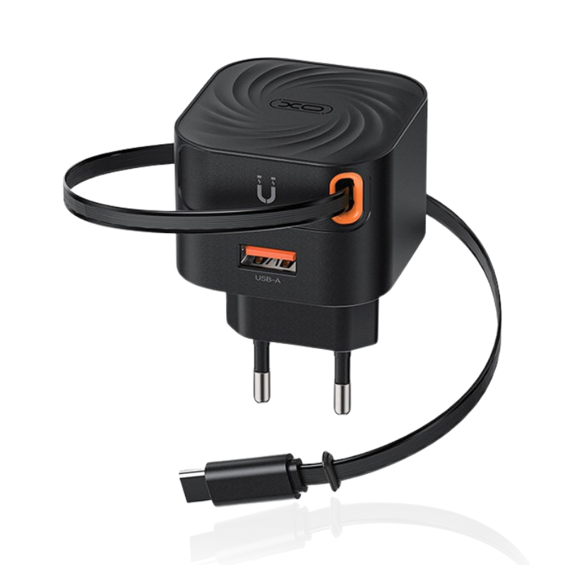 L165 EU 20W BRZI PUNJAČ SA UVLAČNIM KABLOM XO je praktično i kompaktno rješenje za brzo i sigurno punjenje vaših uređaja. Dolazi sa ugrađenim Type-C kablom na uvlačenje i dodatnim USB-A priključkom, što ga čini idealnim za kuću, kancelariju ili putovanja.