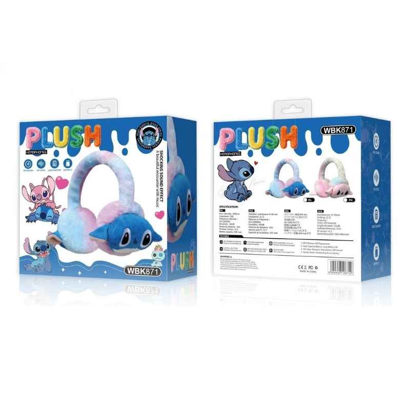 Plišane Bluetooth slušalice WBK871 su mekane i udobne bežične slušalice sa popularnim Stitch dizajnom koje pružaju zabavno i prijatno iskustvo slušanja. Idealan su izbor za djecu koja vole crtane likove, muziku, igrice i gledanje sadržaja na telefonu ili tabletu.