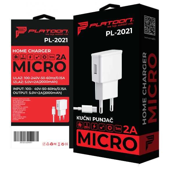 PUNJAČ KUĆNI MICRO PL-2021 2A 1M PLATOON je praktičan i moćan kućni punjač koji će vam omogućiti brzo punjenje raznih uređaja.