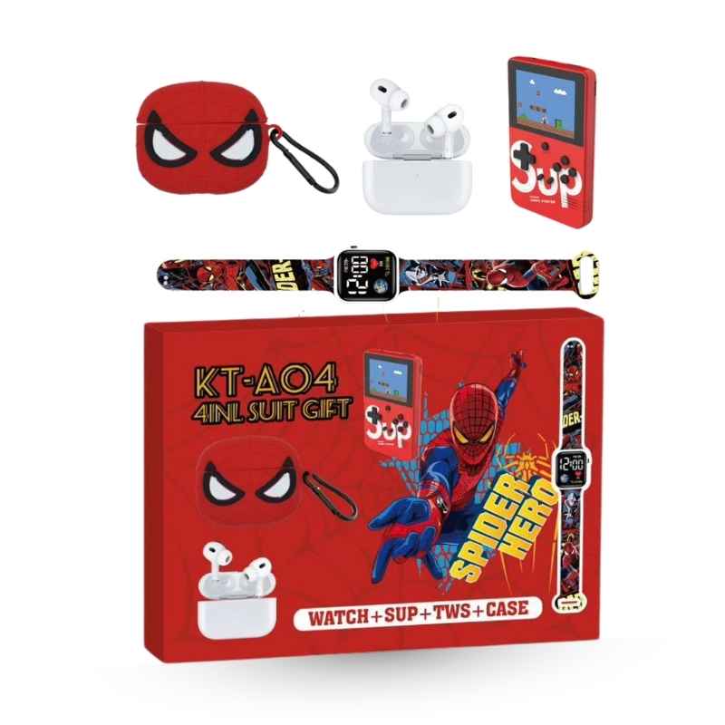 Spider-Man poklon paket 4U1 KT-A04 SAT+SUP+TWS+FUTROLA crveni