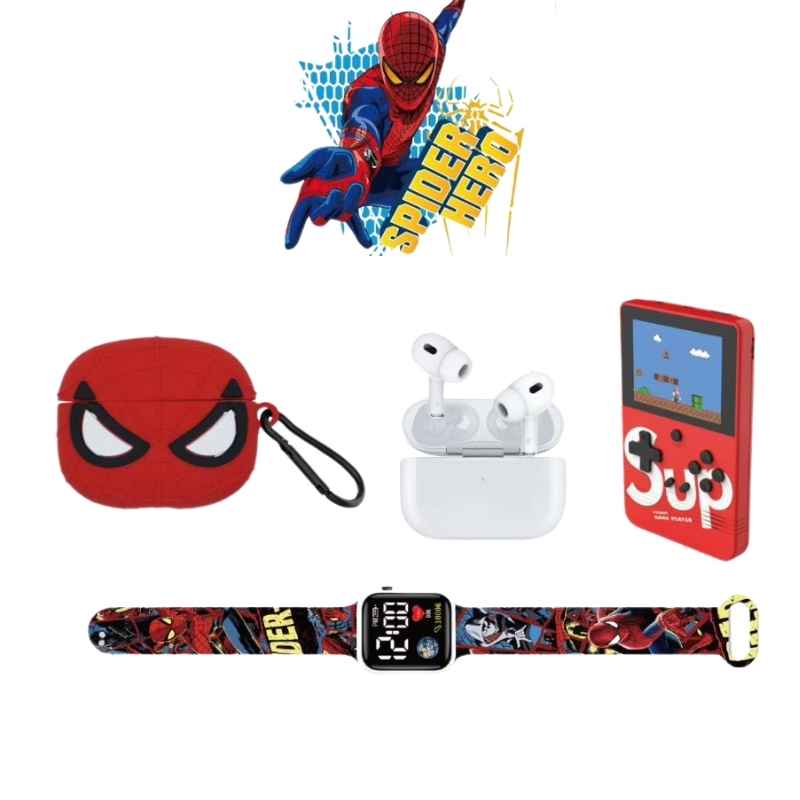 Spider-Man poklon paket 4u1 KT-A04 je zabavan i praktičan set sa popularnim Spider-Man dizajnom koji uključuje više korisnih uređaja za svakodnevnu upotrebu. Ovaj komplet je idealan poklon za djecu koja vole superheroje, igrice i muziku.