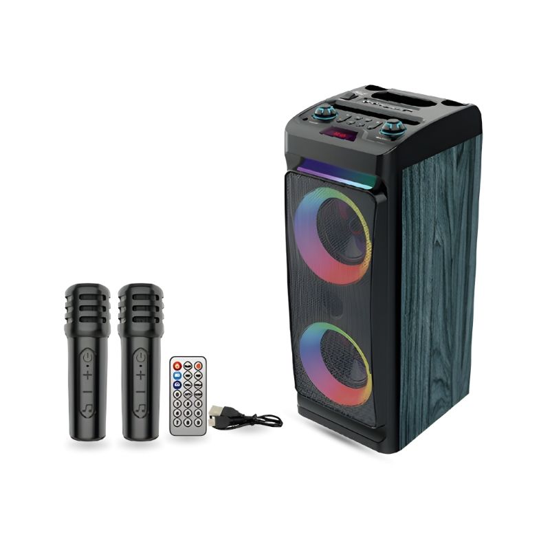 Bluetooth zvučnik sa RGB osvjetljenjem i bežičnim mikrofonima je praktičan audio uređaj namijenjen za kućnu upotrebu, zabavu, druženja i različite vrste proslava. Zahvaljujući ugrađenim funkcijama, snažnijem izlazu zvuka i dodatnoj opremi, ovaj model predstavlja praktično rješenje za reprodukciju muzike i korištenje mikrofona u različitim prilikama.