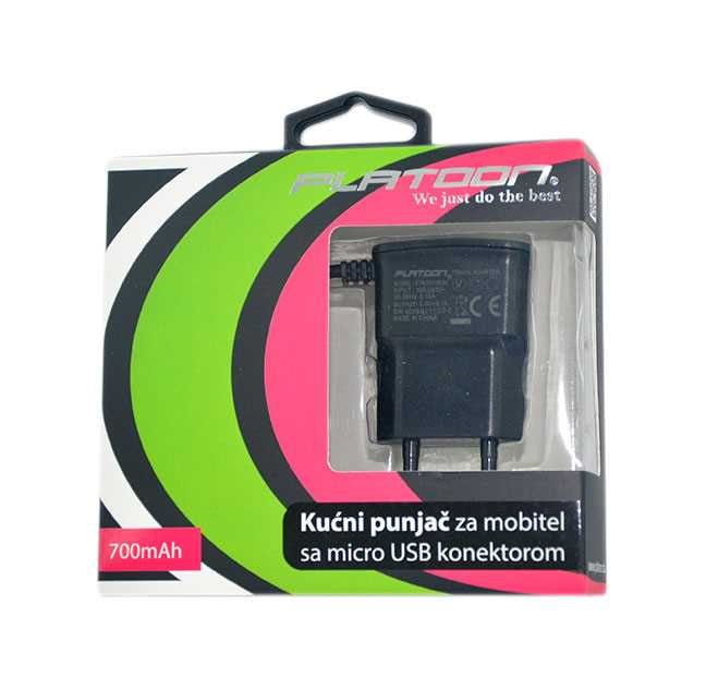 Kućni punjač PLATOON sa Micro USB konektorom je praktičan i pouzdan uređaj za punjenje svih kompatibilnih mobilnih telefona i uređaja kod kuće, na poslu ili u pokretu.